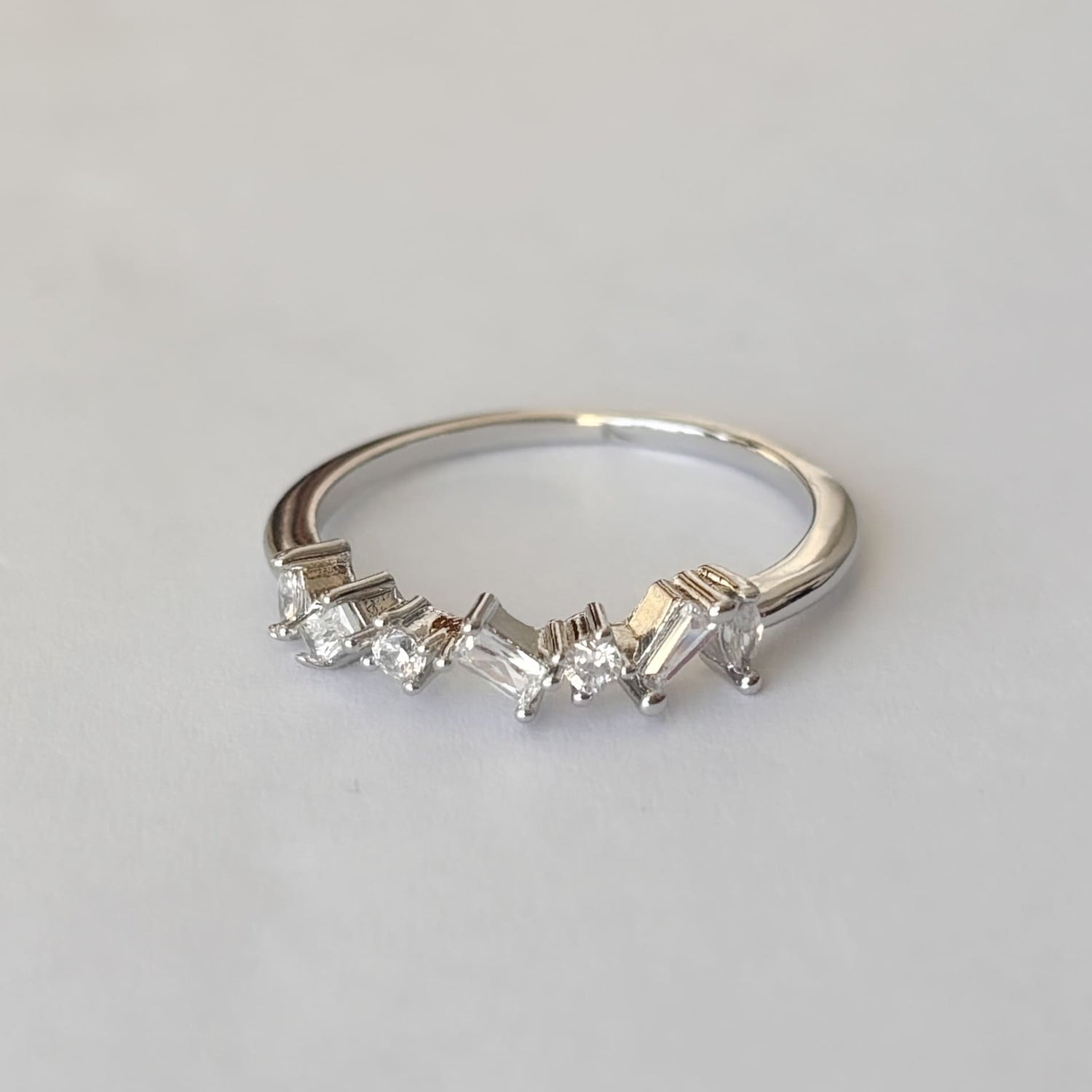 Anillo delgado plateado zirconias en zigzag chapa de oro