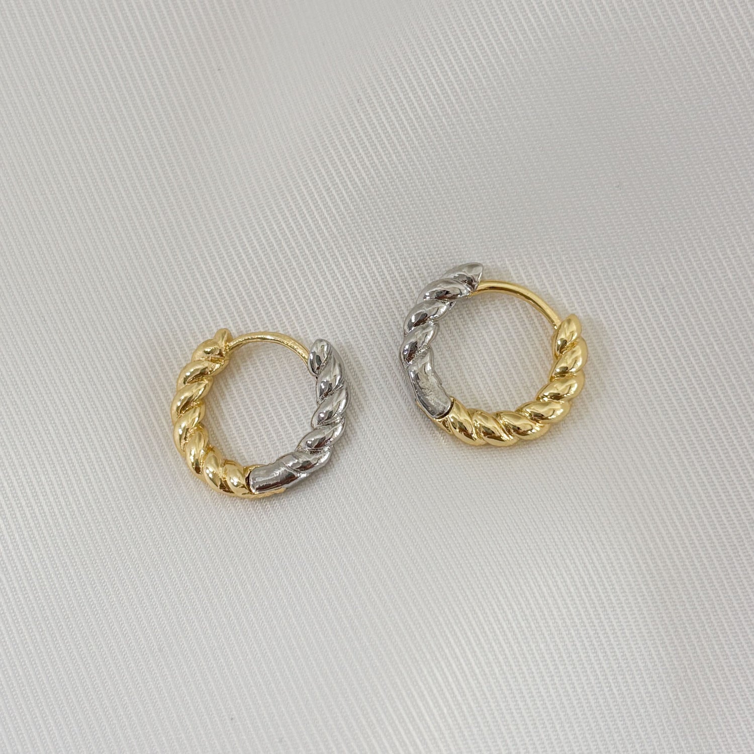 Arracadas bicolor torcidas chapa de oro