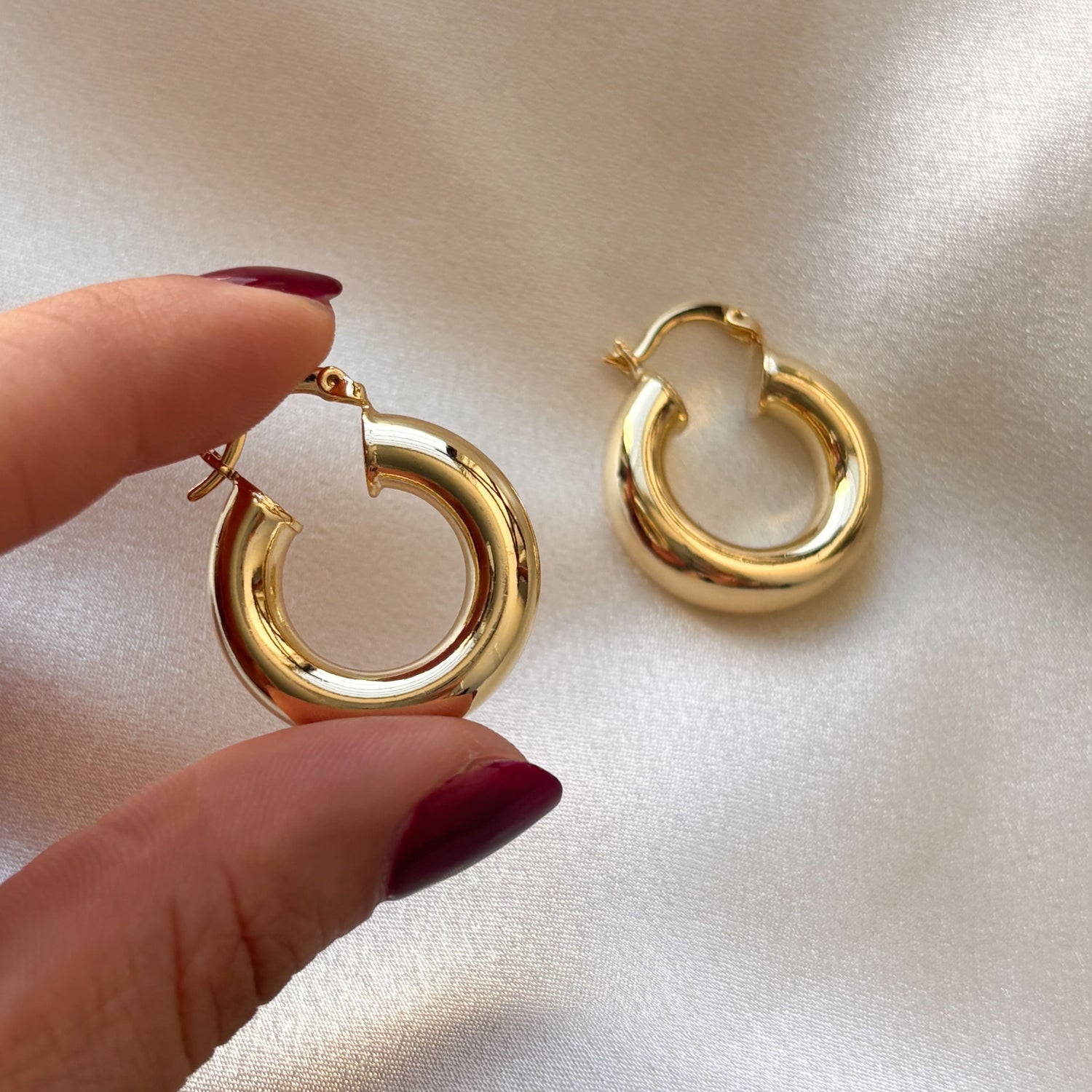 Arracadas chunky chicas chapa de oro 2.5 cm