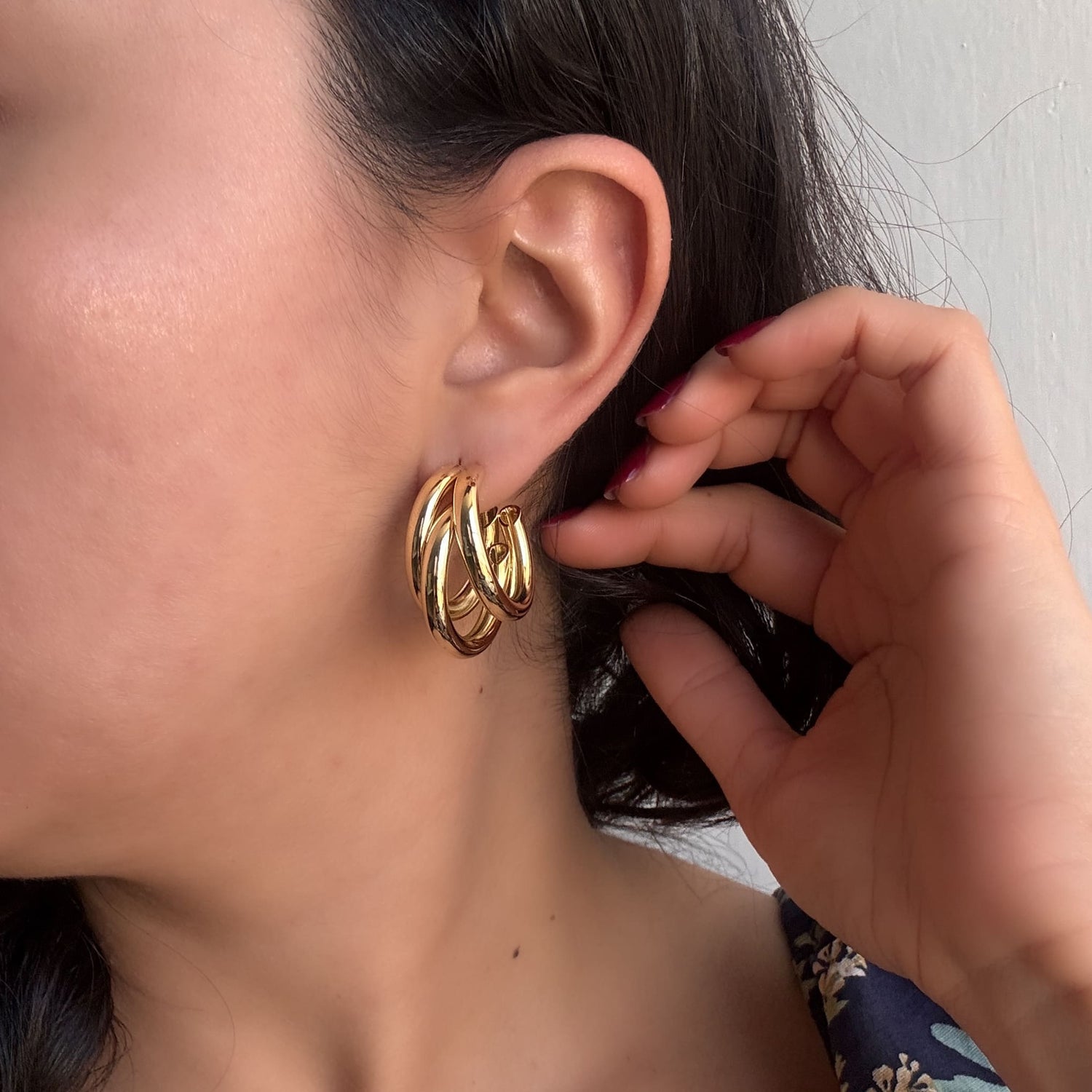 Arracadas triple tubular chapa de oro 2.5 cm