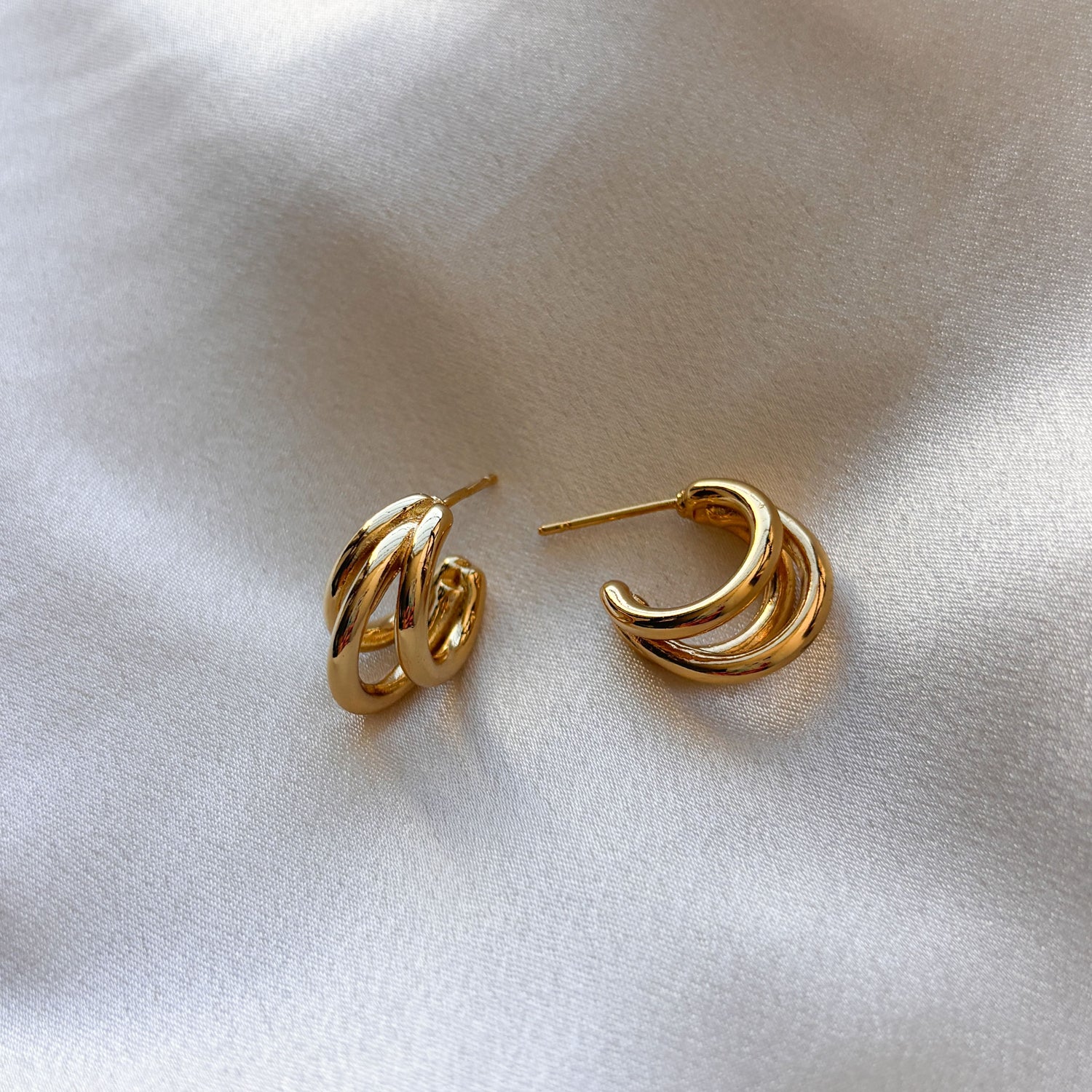 Arracadas triple tubular mini 1.5 cm chapa de oro
