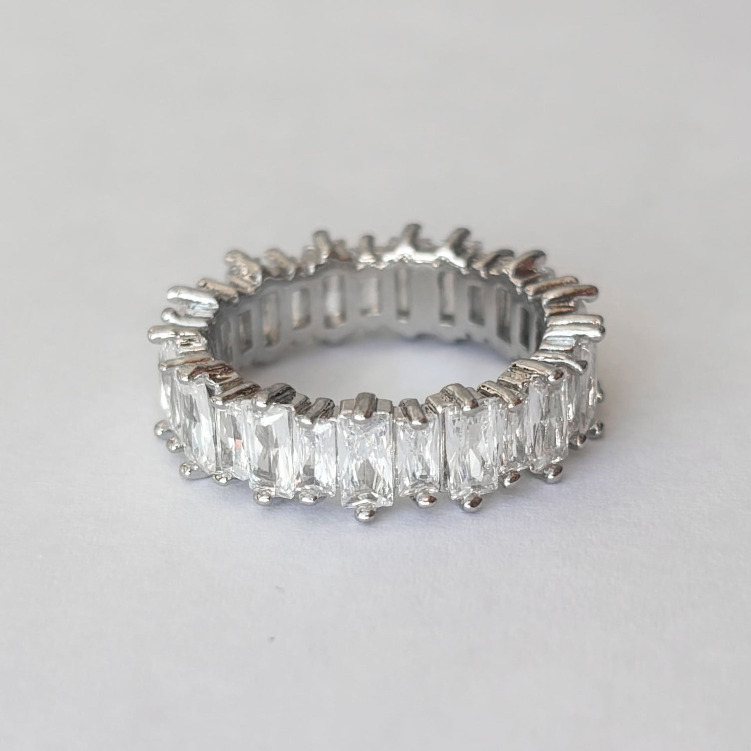 Anillo churumbela plateada baguettes desiguales chapa de oro