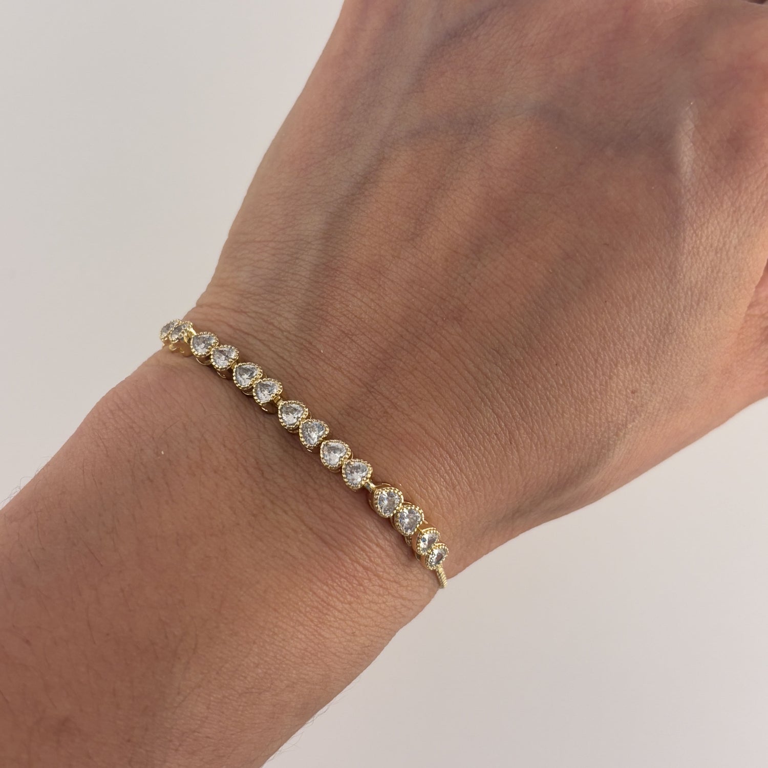 Pulsera ajustable chapa de oro corazones zirconias