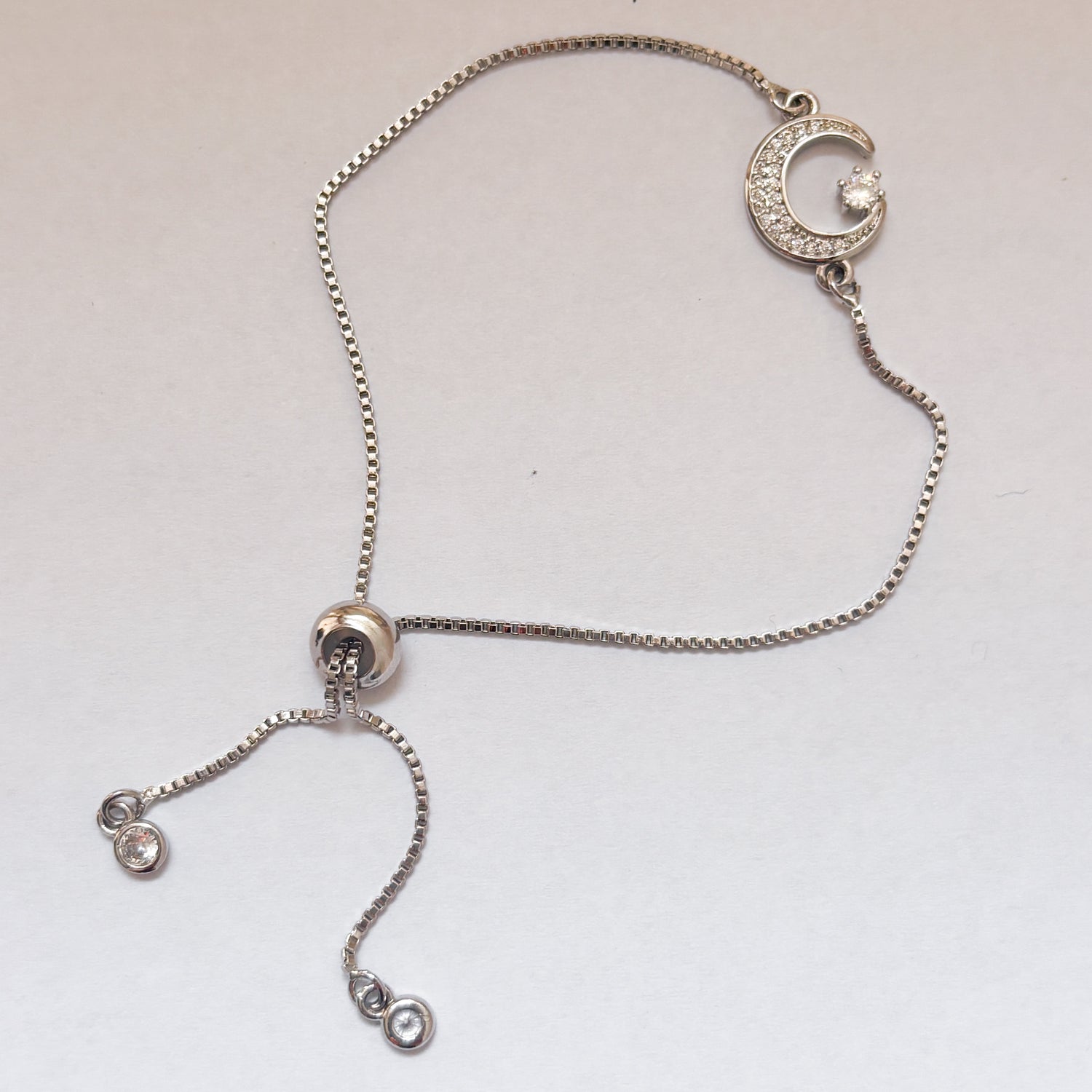 Pulsera plateada luna zirconias ajustable chapa de oro