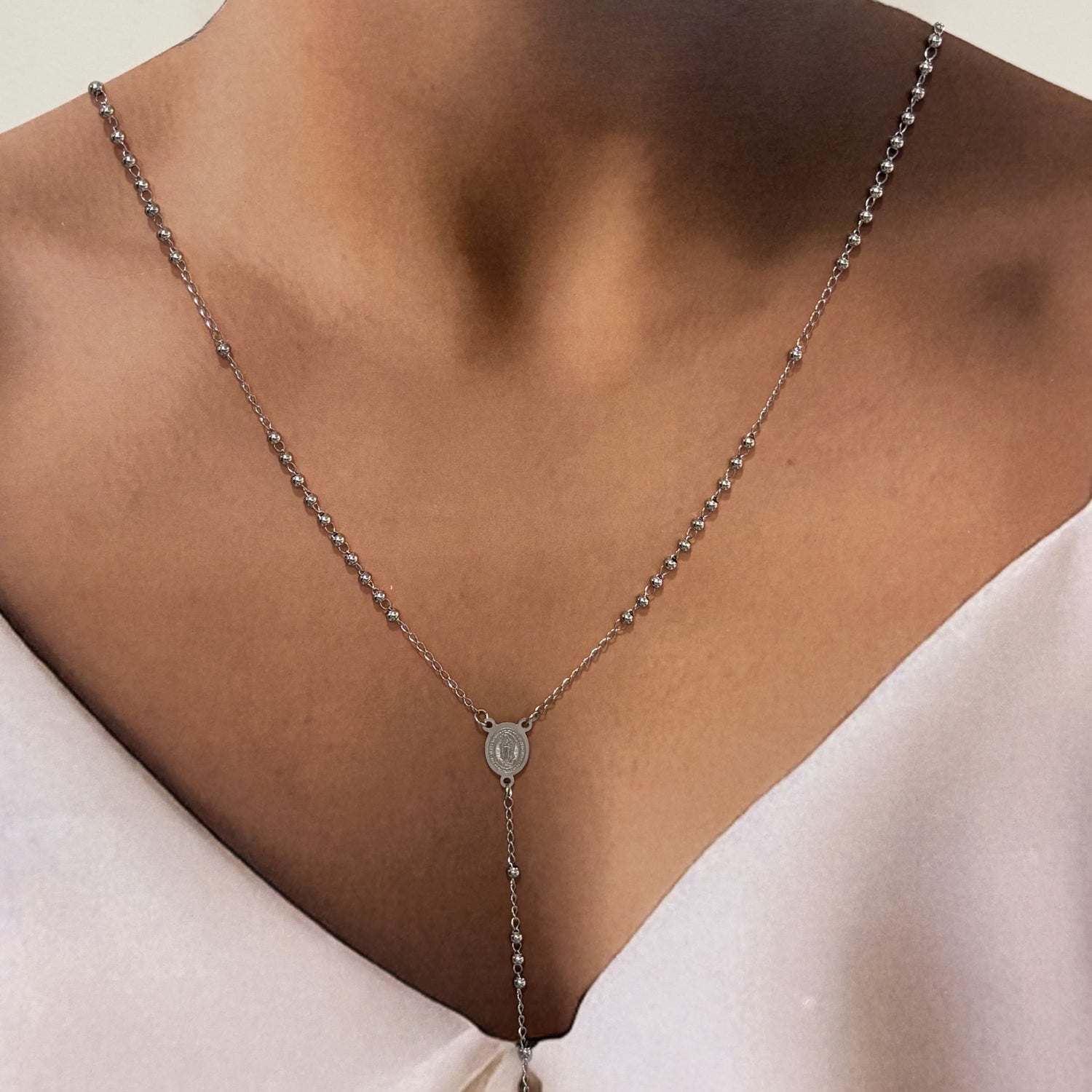 Rosario acero inoxidable virgen de Guadalupe delgado