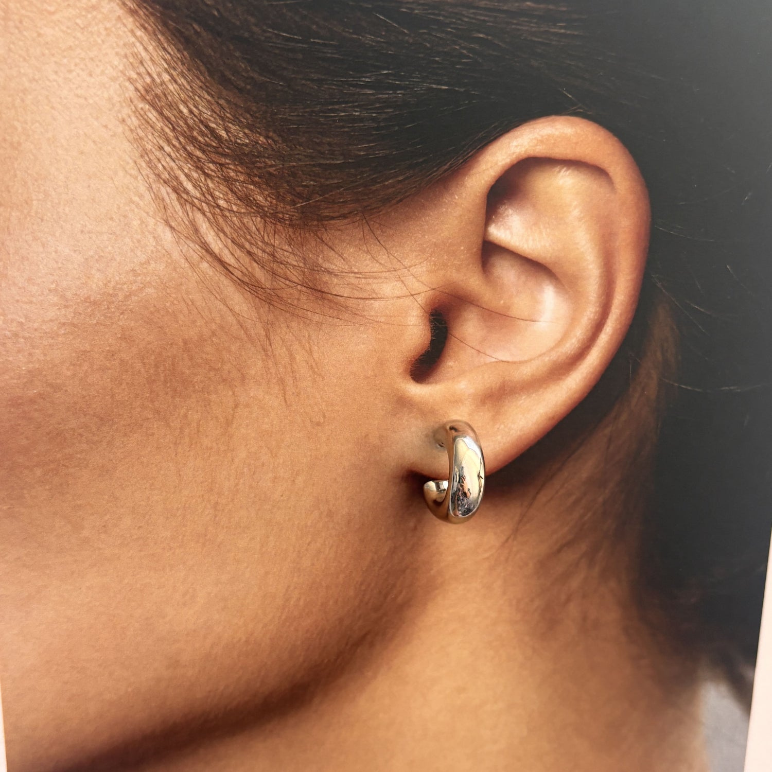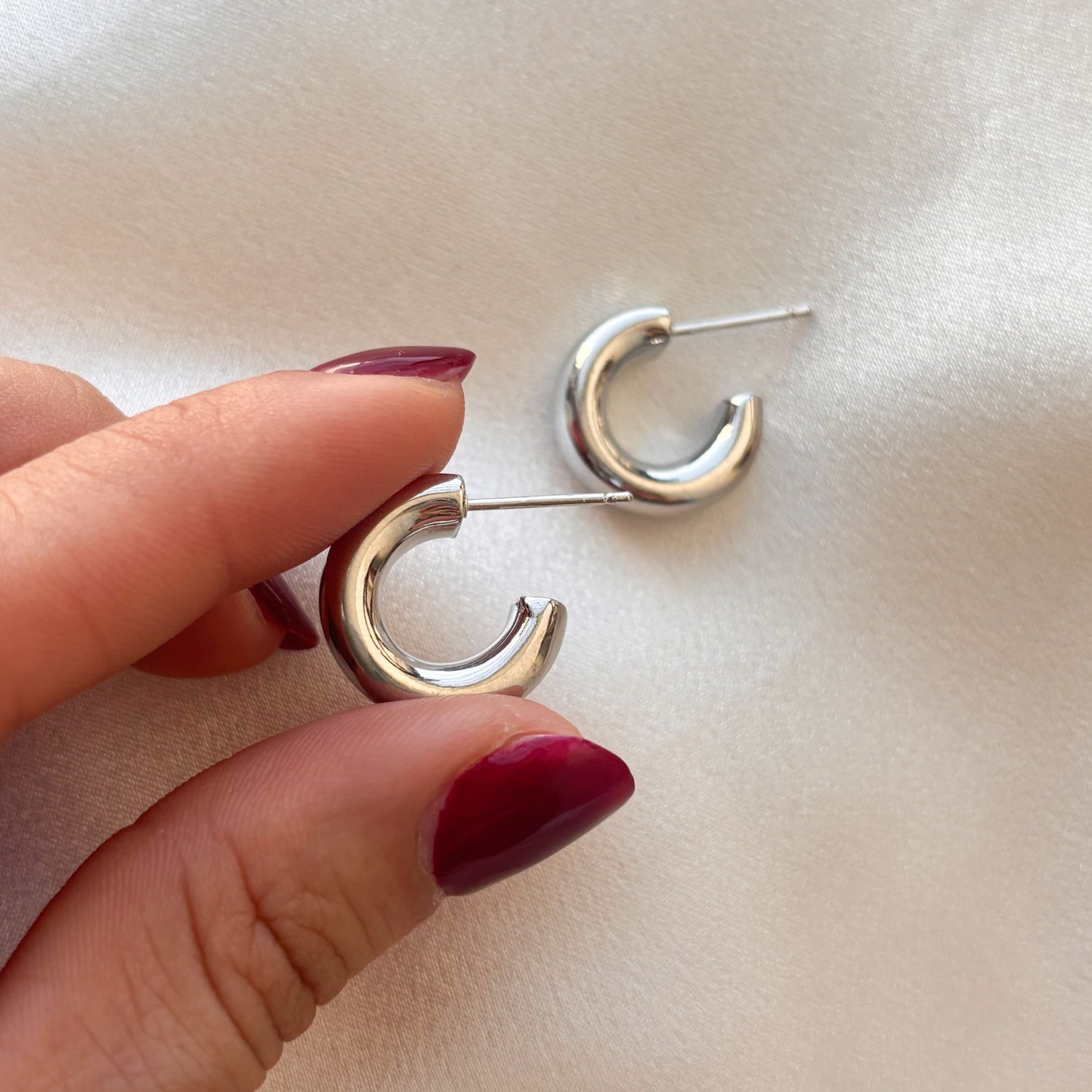 Semi arracadas plateadas chunky mini chapa de oro 1.5 cm