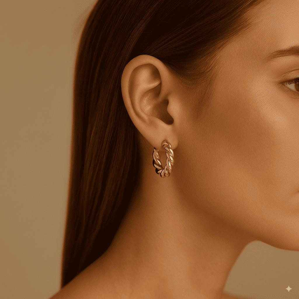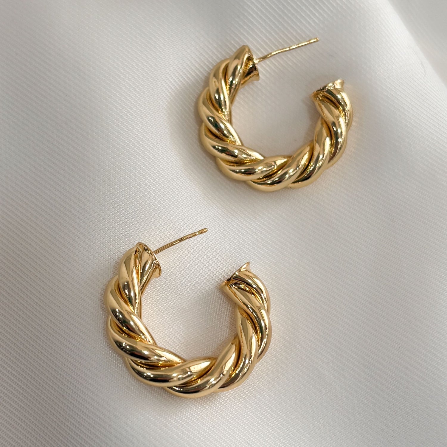 Semi arracadas trenzadas 2.5 cm chapa de oro